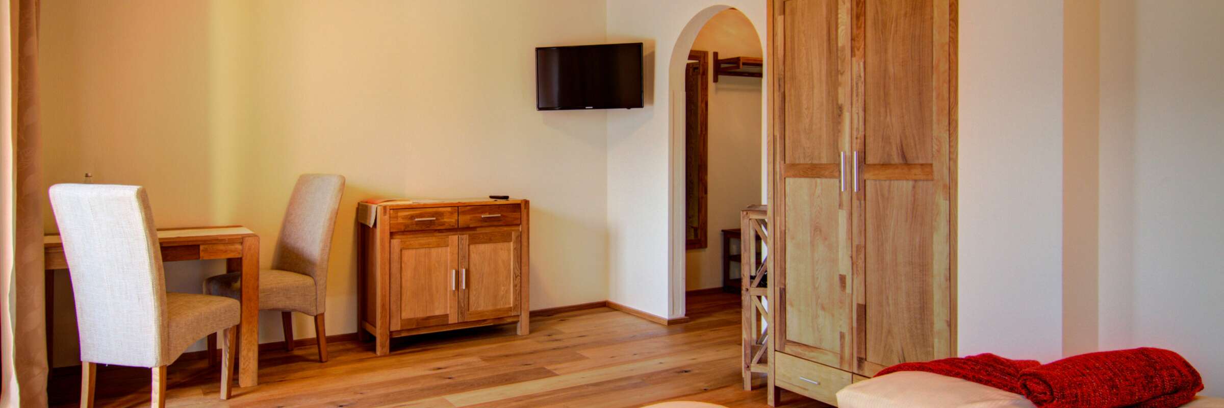 Ca. 40 m² komfortables 2-Schlafraumzimmer für 3-4 Personen im Tiroler Stil mit Holzboden und Verbindungstür.